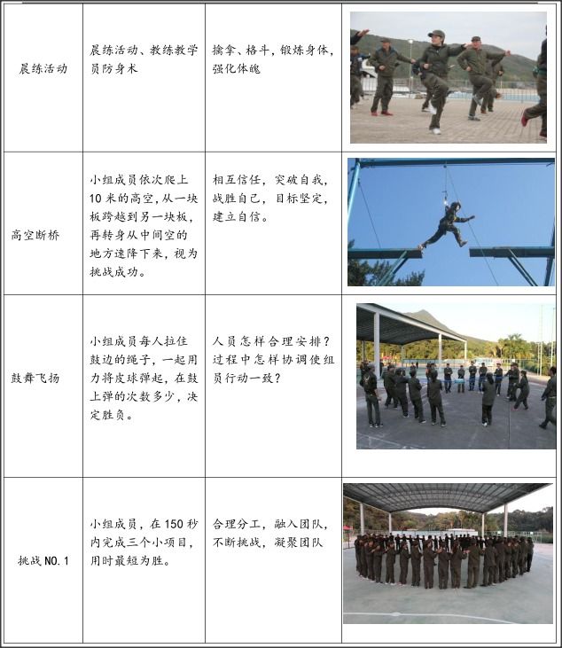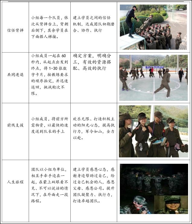 4、 在团队合作的基础上,将不可能化为可能,感受团队力量,培养感心态,提升团队凝聚力、执行力;
