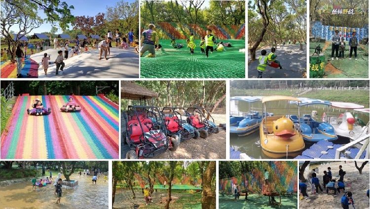 百亩花海(牡丹花展2月16日止)阿勒泰雪乡、儿童卡丁车、游船、丛林穿越(三条道)、魔网乐园(5张网)、七彩滑道、萌宠乐园(有小山羊、科尔鸭、鸸鹋、小香猪、松鼠等约10种动物)、森林滑索(4条)、蹦蹦 云、小木屋滑道、户外赶海乐园(鱼筝捕鱼、沙池寻宝、手摇船、捉鱼摸蟹)、美式台球、蜘蛛爬网、勇攀高峰爬网、生态修复科普长廊、蝴蝶昆虫科普长廊。