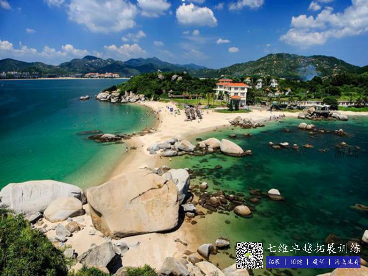 基地简介:惠州巽寮湾海公园拓展训练基地是著名的海滨旅游风景区:“全国最佳休闲名镇”、“全国特色景观旅游名镇”、“广东十大美丽海岸”、“国家4A级旅游景区”,素有“东方夏威夷”之美誉。那里的优美风景以奇闻名,海奇、滩奇、山奇、石奇、洞奇,八个海滩相连,沙滩晶莹细软,海水清澈,海底坡度平实,百米内水深不超过2米,特别是巽寮湾沙滩长达3000多米,绿树林带环境,被誉为"天赐白金堤",是得天独厚的天然海水浴场。