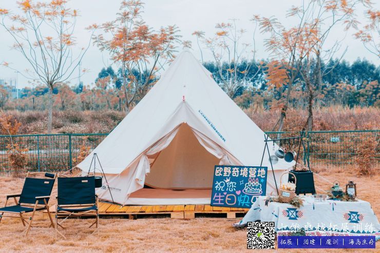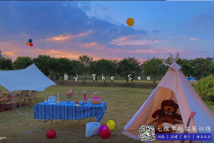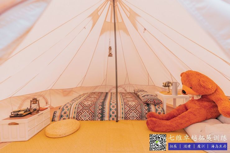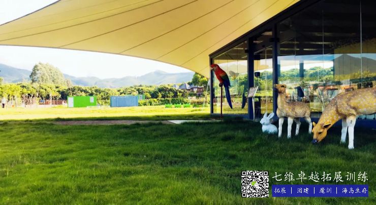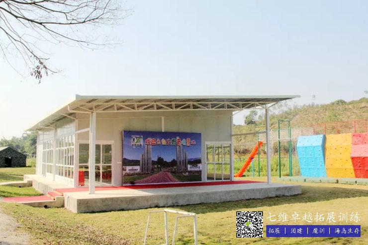 青少年营区占地约10000平米,内设多功能教室一间,配备声光设备,可容纳120人左右开展室内教学及会议;室外是空旷的绿野草坪,200平钢拉膜风雨棚以备不时之需,装备有专业模拟逃生(营救)教学场地,亲子无动力旋转木马、摩天轮,手工作坊,军事营区,先锋工程教学等……