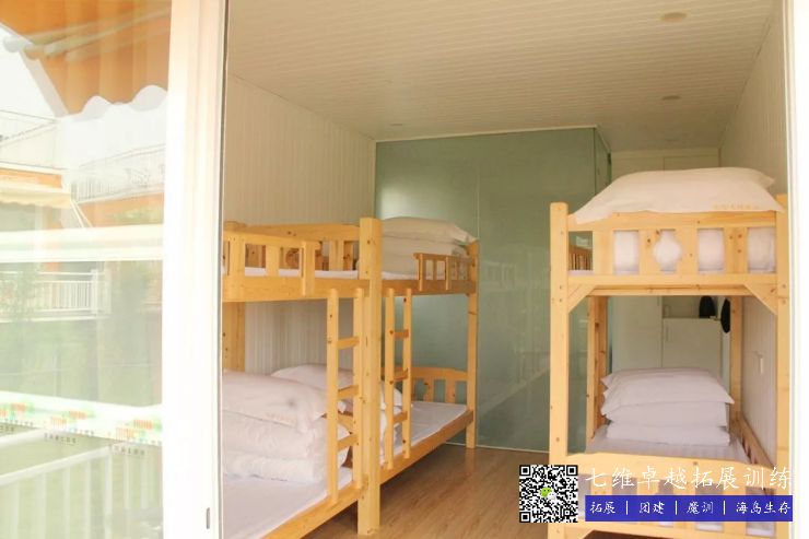 第一期提供22间温馨舒适的精美集装箱营房,六人间上下铺带空调卫浴,不仅为青少年活动提供一个集体生活的空间,也为成人拓展团队一个回味学生时代的追忆!