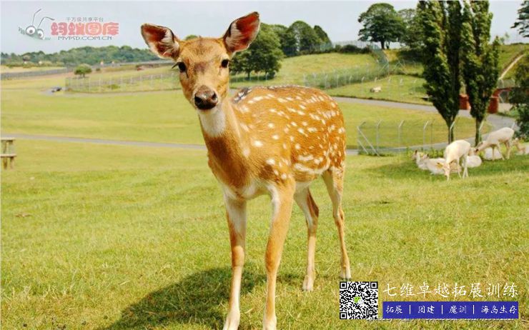 梅花鹿——林中精灵,毛色随季节的改变而改变,夏季体毛为棕黄色或栗红色,无绒毛,在背脊两旁和体侧下缘镶嵌着有许多排列无序的白色斑点,状似梅花,因而得名。