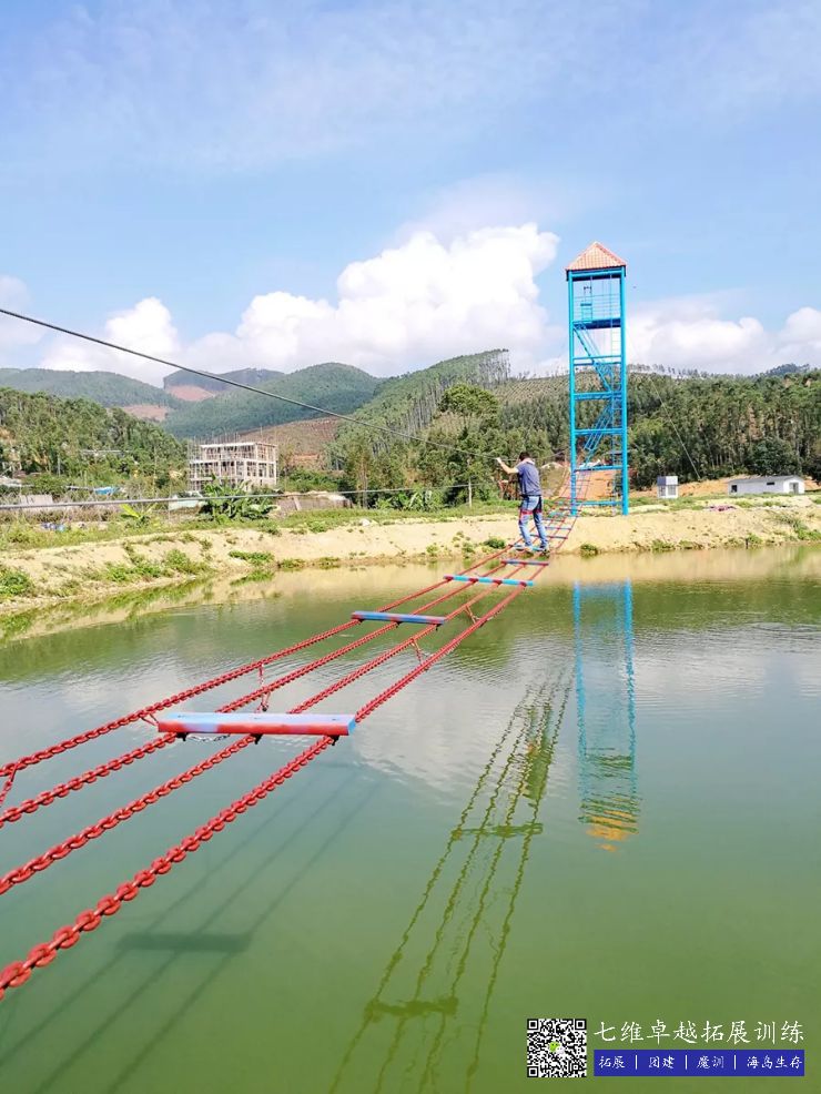 八面体高空拓展架,四项中低空穿越项目,毕业墙等一应俱全,5000平草地加3000平水域,真正实现水陆空三维立体布局,充分满足每一个团队的拓展想象空间!