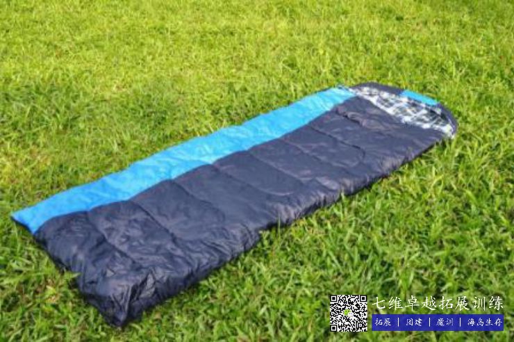 场地配备80个单人睡袋,温度最低能御寒0-5度、夏天睡袋展开当普通被子使用。