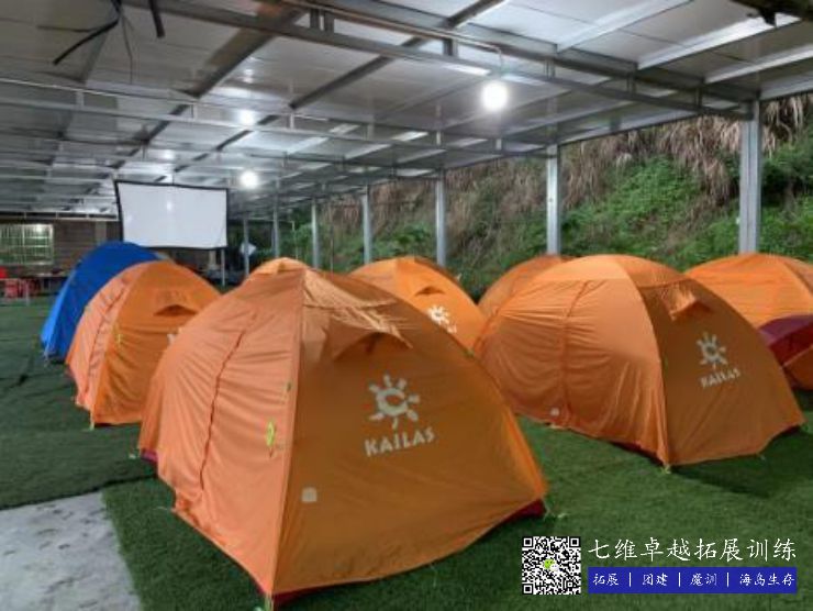 露营场目前配备50顶双人帐篷、帐篷全部是国内知名品牌牧高笛、喜马拉雅,正常能够预防中雨。