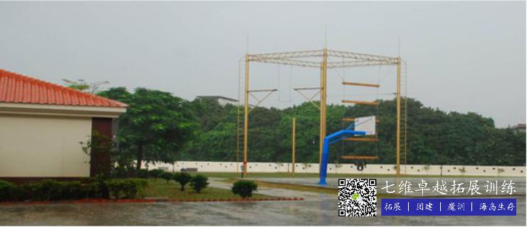 户外拓展训练场设有天使之手、跳出真我、巨人梯、空 中断桥等完善的高空项目,还拥有梅花桩、毕业墙、信任背摔等经典地面项目等。