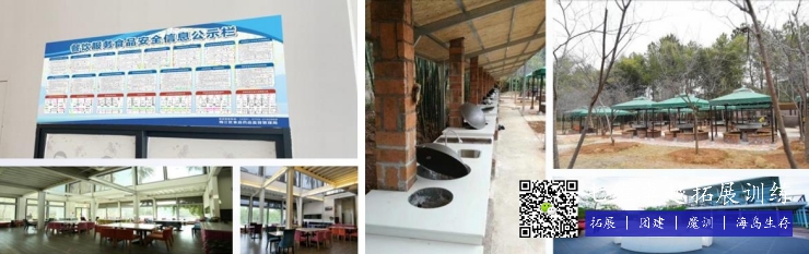基地拥有可同时容纳200人室内餐厅,300人户外餐厅;农耕采摘区取材,自己动手烧柴自制美味佳肴,提升动手实践能力,可进行制作竹筒饭,土窑鸡、柴火土灶、土窑鸡、竹筒饭、烤全羊、包饺子、自助烧烤、烤地瓜、磨豆浆等项目。食品符合国家餐饮卫生标准,设有专门食品留样区,每日食品安全工作登记区。