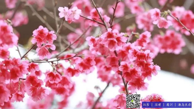 每年春天樱花盛开时,漫山遍野的樱花,花繁似锦,各品种樱花纷纷开放,红粉黄白、各种花色,落地的樱花红彤惊艳,让人不忍踏足,如置身花海。