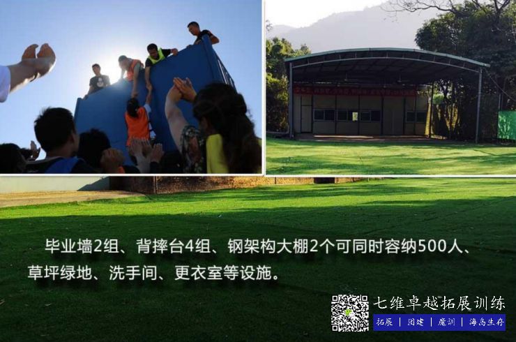 拓展培训区设有拓展棚、会议室、拓展高空架、毕业墙、草坪绿地、洗手间、农家乐、亲子体验、山地车等。