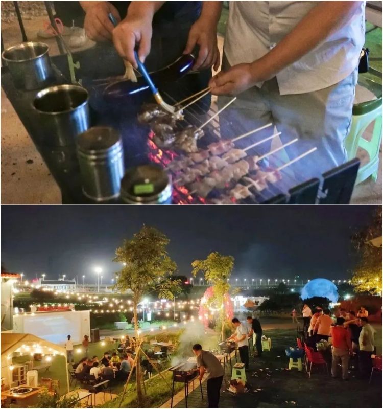 如果你觉得坐在一起吃鸡不够欢乐,那么你可以点一份烧烤套餐,在莲塘大秀场,一边烧烤,一边K歌,欣赏着美妙的夜景,沐浴着微风,与朋友举杯共饮,岂不快哉!