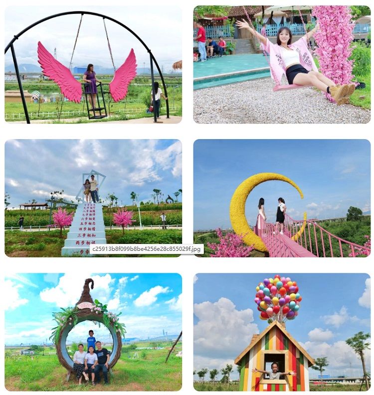 园内有很多的打卡点拍照,有爱情天梯、幸福月亮桥、浪漫气球木屋、鸟巢、雨伞树、桃花秋千、相框、天使翅膀秋千等16个网红打卡点,您可以在此慢慢走、慢慢看、慢慢拍每一处都不相同,休息好后,可以跟家人朋友散步消消食,拍拍大片。