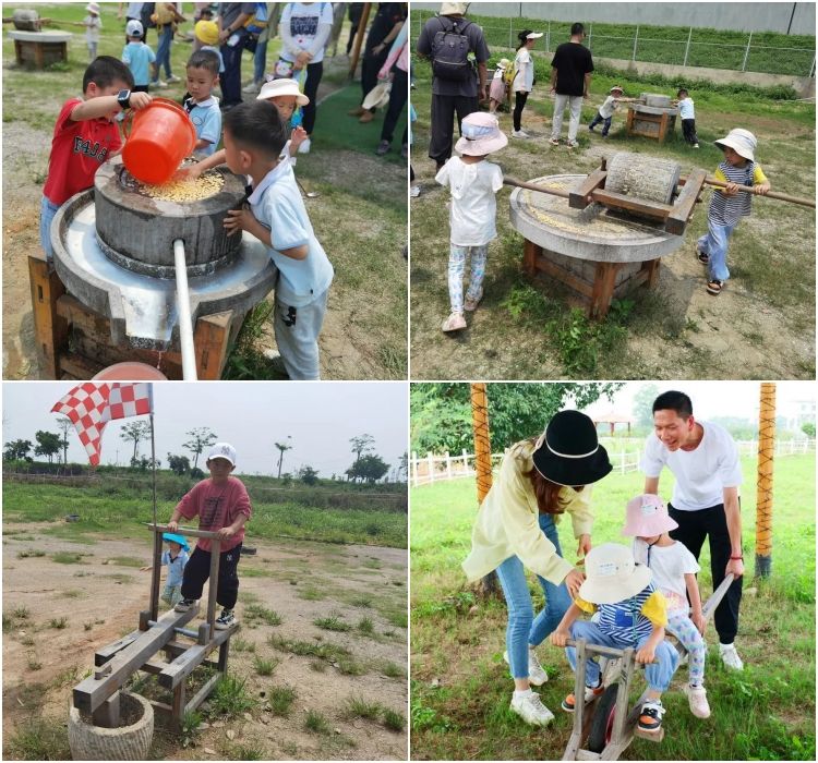 “走过四季,又是一年”春播种、夏长赢、秋收获、冬归仓,荷塘印象记录着农作物的成长。来到农耕农具体验园,孩子们纷纷卷起袖口,碾豆子、磨豆浆、踩打稻机,在这里体验着被自动化机械代替的传统农具 ,回归生活的本真,遇见最纯真的快乐。