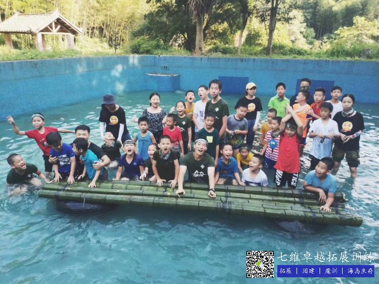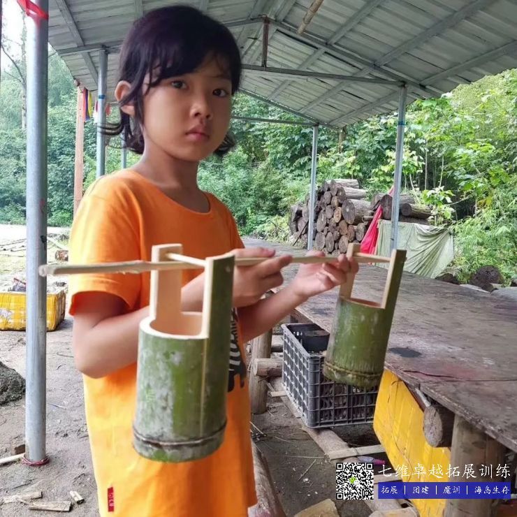 竹筏:上山砍竹子,锯成长短一致,再用绳索把两端扎紧,然后放到水塘里,孩子们穿上救生衣在自己制作的竹筏上漂流,甭提有多高兴了。