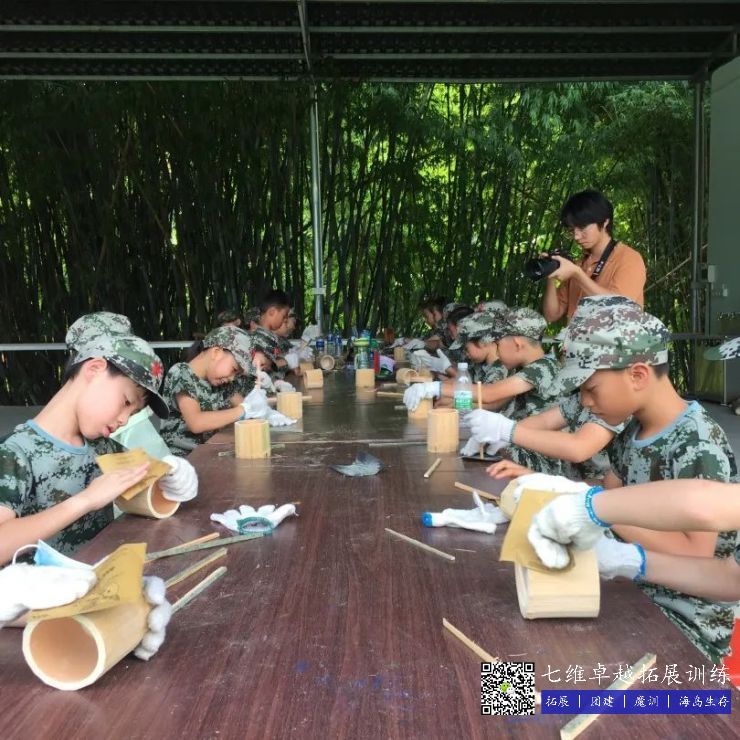 竹简,古代用来写字的竹片,早在商代,人们已利用竹木制简,用绳编连成册。基地的工作人员会把竹子破成小片,两头钻上孔,孩子们用砂纸打磨、穿绳完成这一套工艺,最后在竹简写上一首古诗,一句诗篇,感受古代的文明。