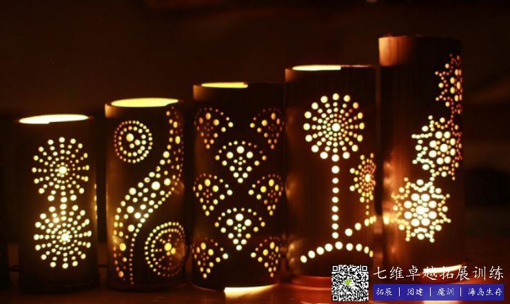 竹灯,与传统的灯笼相比有着朴实清新的风格,孩子们通过砍竹子、锯竹筒、画竹筒、钻孔的过程来完成竹灯的制作,放上LET灯晚上可以夜观小精灵。