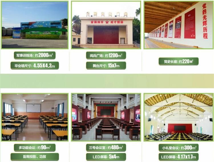 基地配套有营房、训练场、餐厅以及红色礼堂等功能区域,是广大青少年进行红色教育、国防教育、冬夏令营的极佳场所。此外,基地内还拥有完善的大中小多功能会议室4个,能同时满足600余人的会议、培训需要。