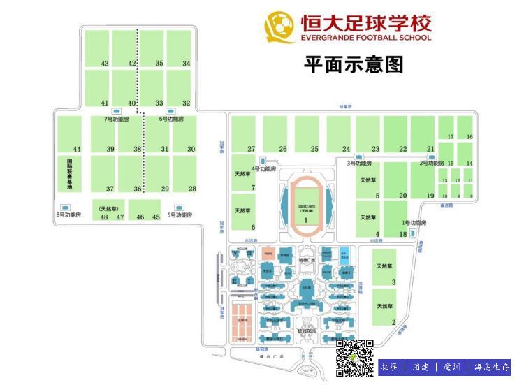 高质量人造场地,6000平米足球中心大楼、2000平米国际顶级体能训练中心大楼、3000平米体育馆,以及1500平米图书馆、1800平米大礼堂、21000平米学⽣宿舍楼、16000平米教职⼯宿舍楼、5000平米饭堂及超市、3000平米学⽣之家等设施设备,综合保障和接待能⼒⼀流。