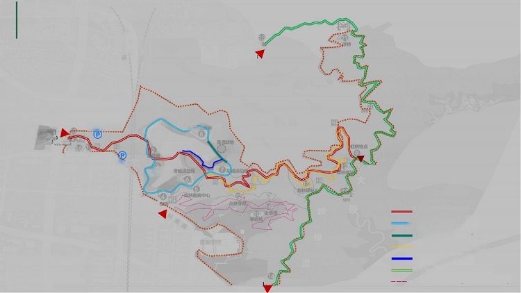 长4公里,沿途一路向上,一条红色道路到底,有两个全景塔,通光明顶绿道,可直达滑草场,全长约10公里,适合团队做活动和徒步,光明网红桥包含大顶岭绿道、浮桥,探桥和悬桥、虹桥。均免费,浮桥就是大家最为关心的玻璃桥。光明玻璃桥其实就是光明小镇大顶岭绿道上的浮桥。整个虹桥有六段,K0- K6.终点有个全景塔可以一览无余。