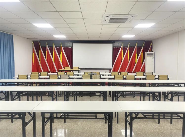 会议室可同时容纳约600⼈参加会议;⼤礼堂配备先进的LED屏 、⾳响 、投影等多功能设备,另可开展会议、教育培训、⽂艺汇演 、讲座、晚会、观看军事题材电影等项目。
