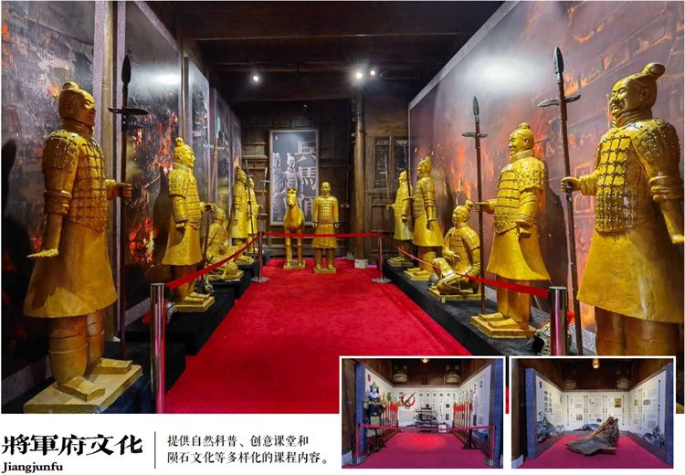 基地主要建筑区域还原了古代将军府邸,按照原比例进行了建设,为游客提供了更 深入的体验和感受