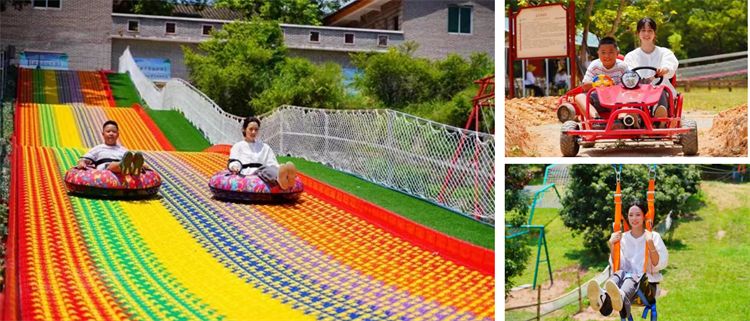 园区内有多种游玩项目:卡丁车,彩虹滑道,飞索,野战,攀网,抓鸡抓鱼等等