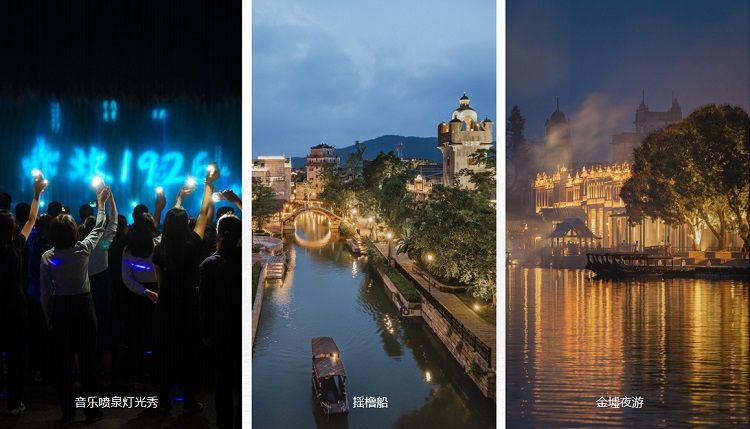 音乐喷泉、灯光秀 、摇橹船