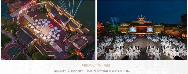 游客服务中心、 赤子广场、 岭南广场等露天场地 ,花神西饼屋、 岭南广场赏心楼、 骑楼街区外场等极具风格的小而精场地 … …不同规模、 不同主题的场地资源 , 可 承办多种形式的商务会议活动 , 训练有素的会议管家队伍 , 能够为各类会议活动 提供高水准服务。