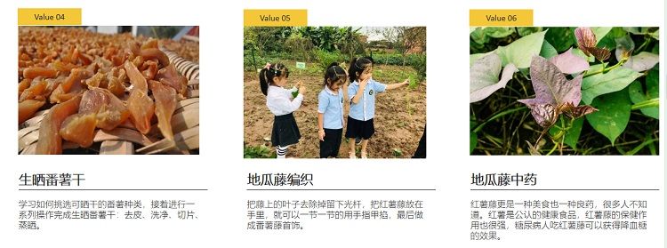 以”番薯“为研学文化符号所打造的番薯岭长廊,通过介绍新造番薯的由来、番禺地区的风土特产以及番薯品种和番薯文化等内容,把以番薯为核心的文化符号发扬光大,不仅可以了解丰富的农耕知识,还能了解广州番禺的风土文化,长廊配有学习资料,可以让孩子们收获颇丰。