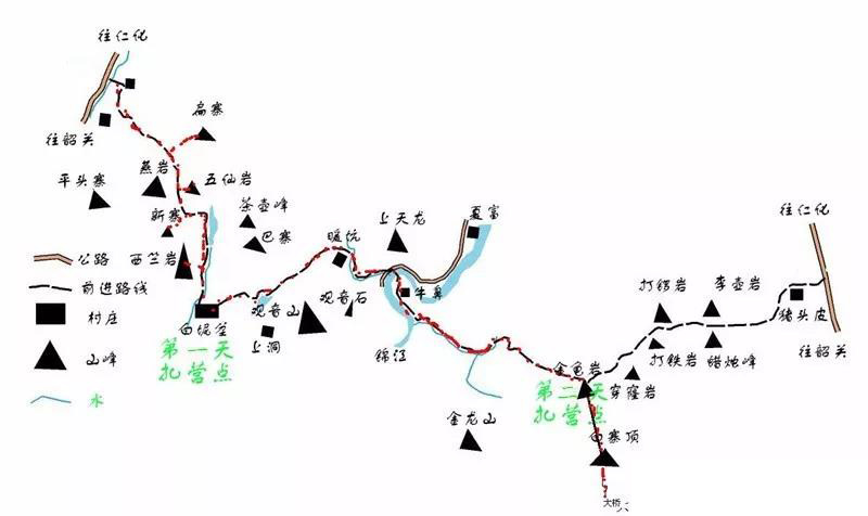 徒步线路(全线):王屋—五仙岩—东坑径水库—巴寨—牛鼻村—金龟岩—恐怖谷—白寨—黄公坡水库—韶石山庄
