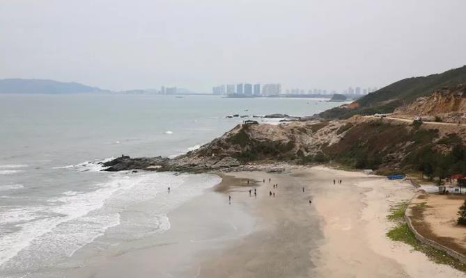 湾仔沙滩位于黑排角海岸线,沙滩未被开发是个安静的小港湾,两边环绕着山,正面的大海上有两个小岛,穿过小岛就是一望无垠的大海。翻过右边的山头能看到更宽阔的沙滩,有一段还弯弯地伸向海中的小岛,淌水可以过去。这里远离城市的喧器,生态环境不错。湾仔沙滩和杨屋沙滩是完全两种不一样的风格,湾仔沙滩是看日出的极佳地点,它有着更加广阔的礁石群,而且沙滩面向东方,所以早晨日出的时候特别漂亮,湾仔村沙滩,绵延几里的平缓沙滩有着一样耐看的近海景致,曲折的礁石带里隐匿着嶙峋的怪石,这里是许多摄影爱好者和婚纱照的取景圣地。