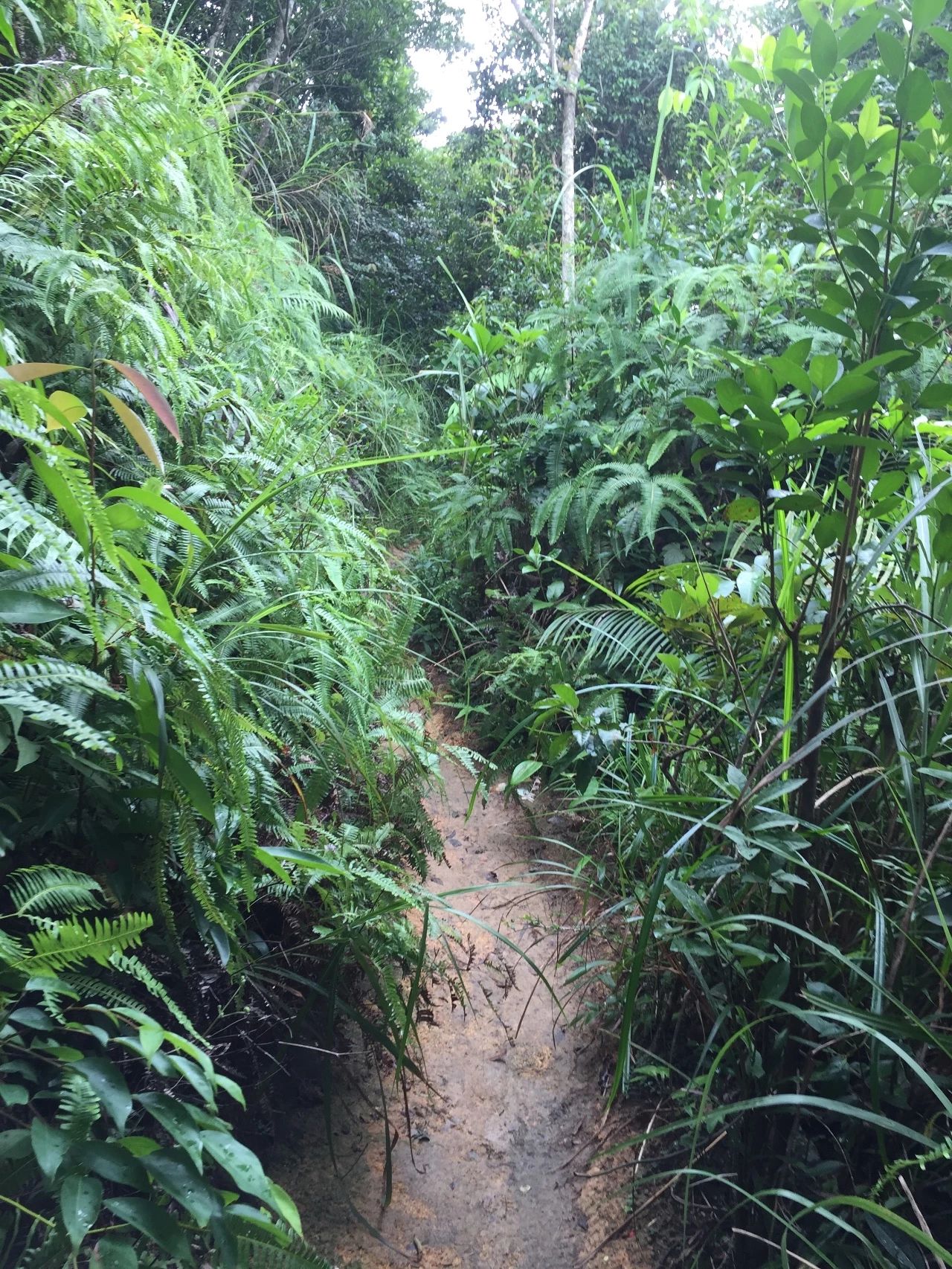 一路上的景色特别好,往上爬的时候,遇上小阵雨,很快就停了,阳光出来,照在植物上闪闪发亮,顿时就被这里的迷人植被所吸引住了。