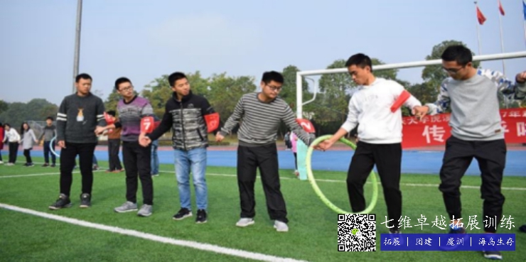 此游戏旨在检视一个团队中人员彼此沟通的状况,同时帮助畅通沟通渠道,以推动今后的相互协作。拓展小游戏一圈到底通过人与人之间的沟通来互相了解,达成共识。这是一个拓展训练中很常见的呼啦圈小游戏,游戏规则是所有学员手拉手围成一圈,在规定时间内,用呼啦圈穿过所有人的身体回到原位。
