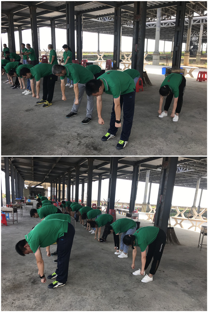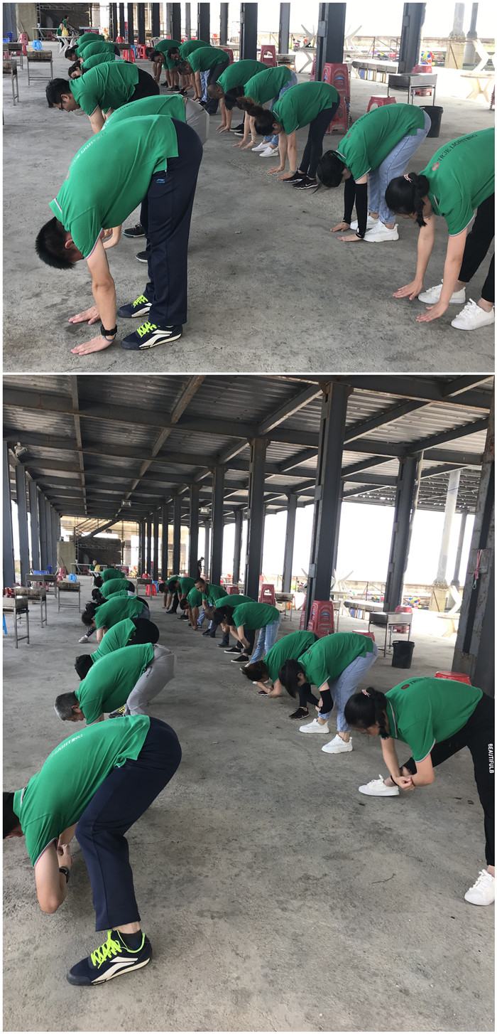 一排过去都在弯腰拉筋