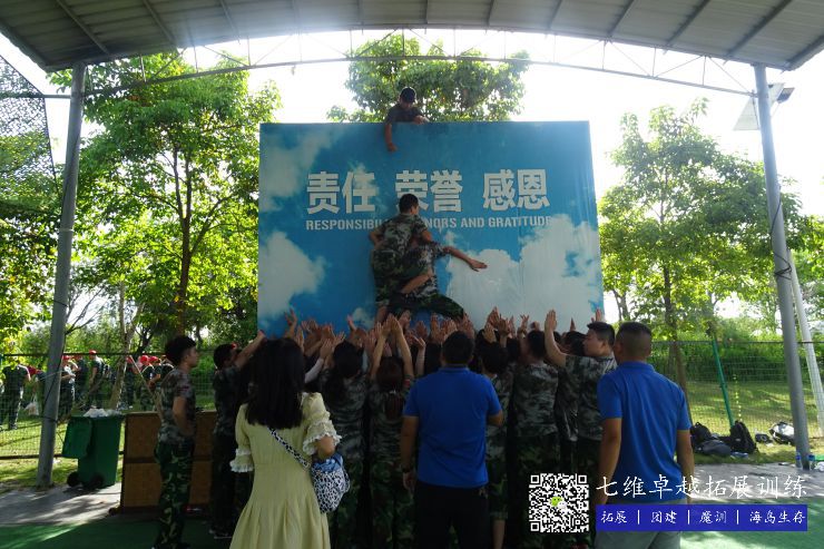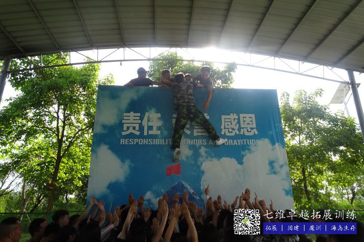 最后在面对4米多高的毕业墙,男同事甘为人梯,勇于牺牲,即便衣服上满是脚印,肩膀开始不断颤抖,仍旧毫无怨言,咬紧牙关。宽厚的肩膀,踏实的双手,让看似不可能完成的任务成为了可能!最后顺利完成任务,当最后一个人完成的时候,我们为自己鼓掌!一个人的力量有限,但只要团队齐心协力,蕴含的力量是无穷的!工作中,或许有摩擦和抱怨,疏于体会和感恩,这次活动让团队每个成员都有了深刻感悟,不仅是一次拓展活动,更是一场心灵的净化!