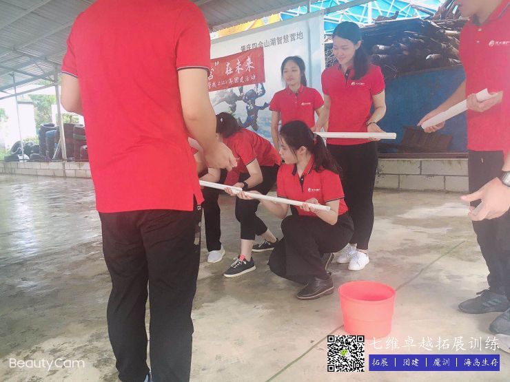 所有队员一字排开,手持接力棒,在保证圆珠不掉落的情况下从教练指定的位置运珠到达终点。要有良好的工作心态和勇于接受挑战的精神才能顺利完成。充分体现团队的领导力,沟通协调能力,工作的计划与严谨性时间与效率的控制,资源的有效利用,及具备在规定时间内调动各种资源解决问题的能力。