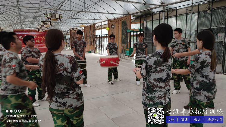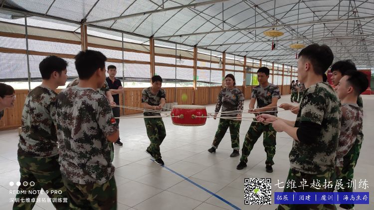 一颗球,一面鼓,要想通过控制鼓的方向和力度让球乖乖的颠起来,考验的是团队里每个成员的融合以及协调能力。经历数次失败后,当球变得驯服,大家内心的激动无法言表。