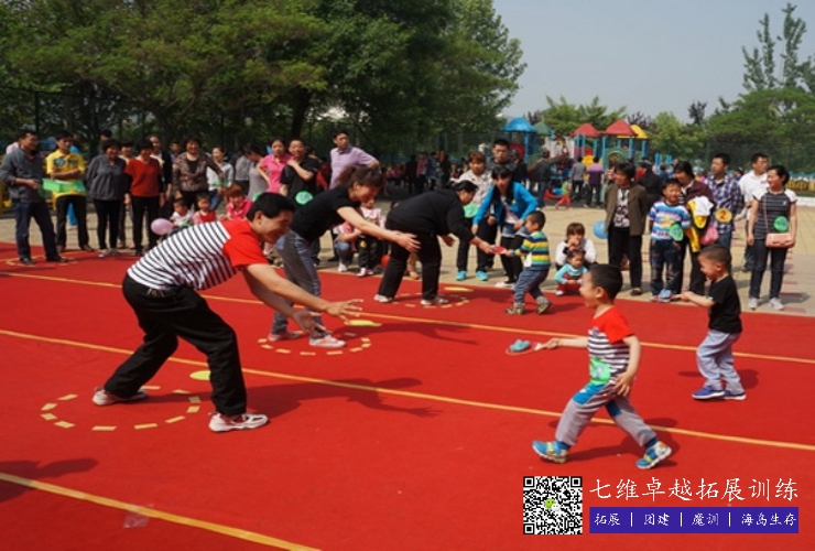 毛毛虫竞速、同舟共济、袋鼠运瓜、托球跑、三人四足、家庭摸瞎子、二人三足比赛、你来比划我来猜、快乐指路、老虎吃汤圆、背靠背传球、拍皮球、插红旗、托气球、心心相印、托乒乓球轮滑比赛
