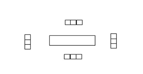 建议在室内,摆好四张桌子。中间一张桌子放“金矿”,其他三张桌子每个小组一张(桌间距2米)。