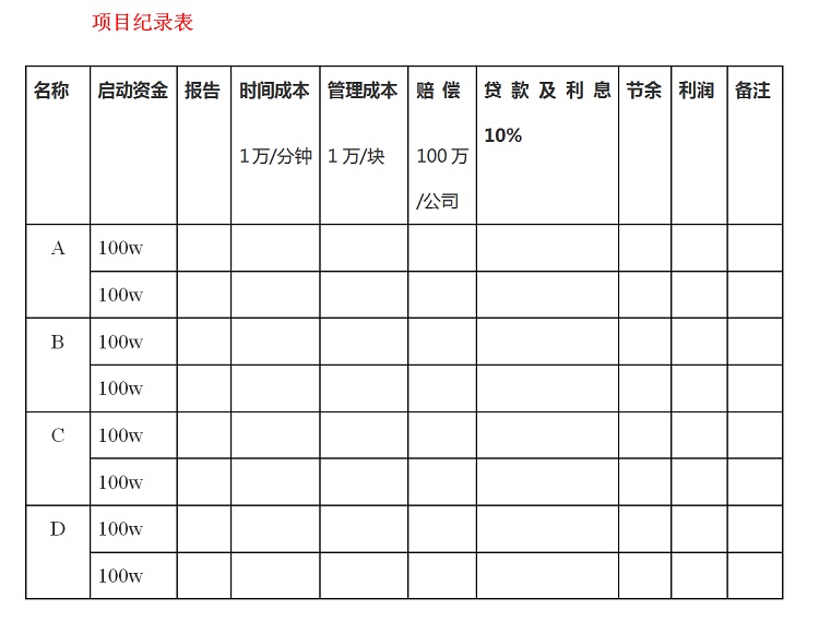 1、 每一轮开始每家公司都有100万的启动资金