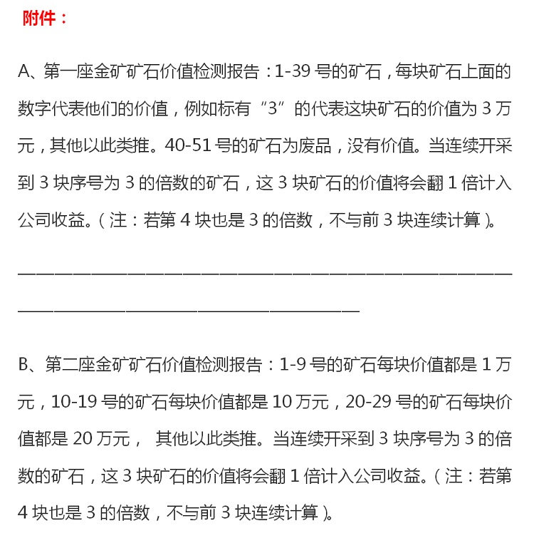 2、 每成功带回一块矿石,需要付给政府1万元的税收。
