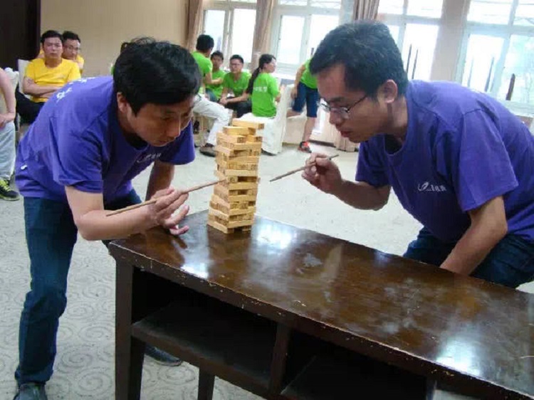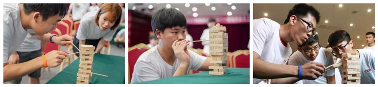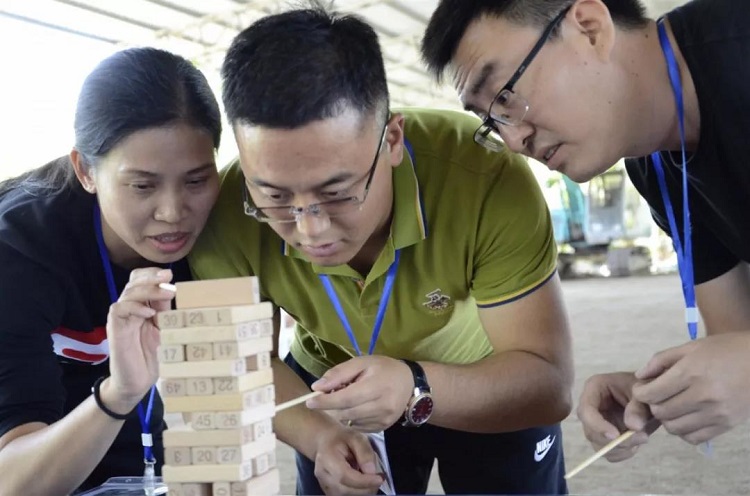 1、将参训学员平均分成四个小队,分别坐在四张桌子后面,进行公司建设。