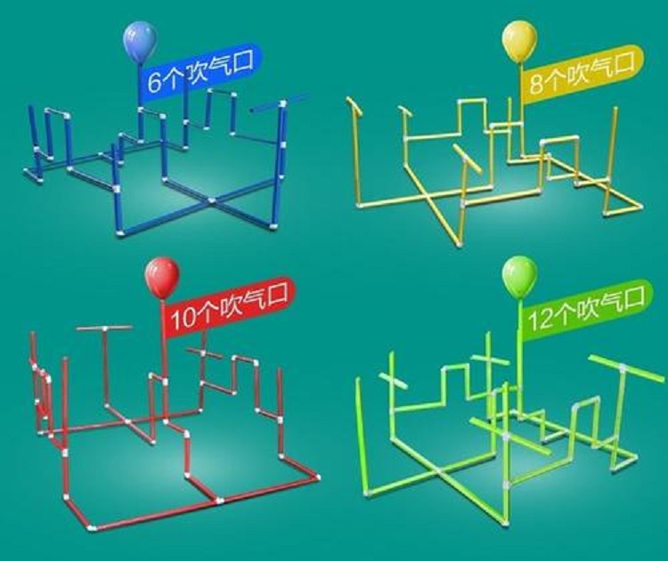 4、除了出气孔位置的气球,其余所有进气孔必须用嘴吹
