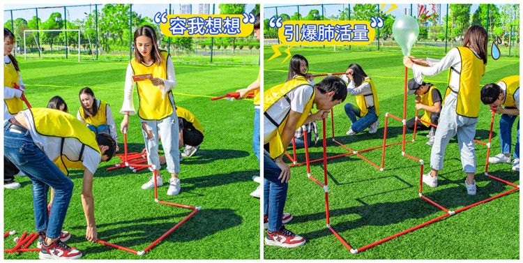 可以促进团队沟通协作的项目有许多,其中也不乏呼吸力量这一项目。先跟大家简单讲一下这个项目游戏的大概内容吧,首先把呼吸机的图纸分派到每个队伍里,但这张图纸只能由队伍里的其中一个人看到,然后看到图纸的这个人向其他队员描述图纸的内容,接着就开始根据图纸搭建呼吸机了,这里考验的是沟通;除此之外,每个队伍分派到的材料都是有限的,所以如何利用有限的材料或者遇到的其他难题要如何解决也是一种考验。