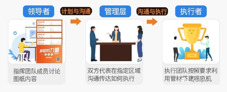 2、指挥组和领导组先用语言设计图纸,然后指挥组派出一个人和执行组的代表进行图纸内容的沟通工作;