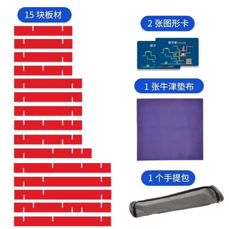 挑战1: 首先让学员在距离三米左右的距离看到项目道具,游戏开始前不允许任何人接触道具,道具的初始状态为堆叠状态(最长的木板在底部,最短的在最顶端)。游戏开始,学员按照图纸所示结构将道具组装起来,组装结束后教练检查是否出现错误。