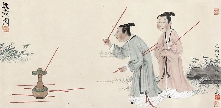 投壶是古代士大夫宴饮时做的一种投掷游戏,也是一种礼仪。在战国时期较为盛行,尤其是在唐朝,得到了发扬光大。投壶是把箭向壶里投,投中多的为胜,负者照规定的杯数喝酒。《醉翁亭记》中的“射”指的就是“投壶”这个游戏,作为宴饮中娱乐宾客的一种项目,是古人用来提高人的注意力、增强身体协调能力的活动。