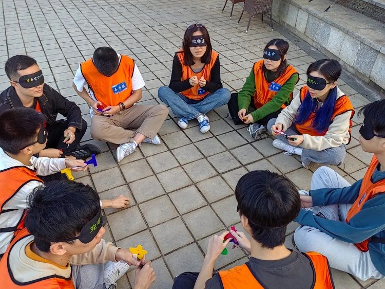 这个问题主要在于试探每个人的安全边界,以及如果作为新员工的话,蒙上眼睛的状态跟新进入一家企业的状态其实是差不多的。
