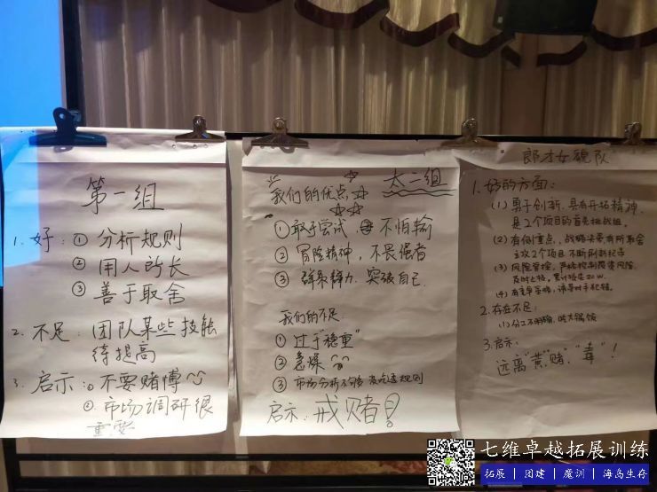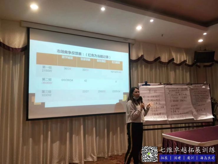 1)宣布项目结束,培训师清点各个公司的财产状况并列出各个公司的名次,从后置前的公布各个公司的财产情况及名次,并针对刚刚的项目进行的情况简单进行各个公司的表现点评,扔出问题点,开始让各个小组以各公司为单位来进行讨论和回顾